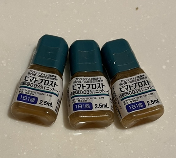 次に試したのは、ニットーのビマトプロスト(グラッシュビスタと同じ有効成分のジェネリック版)です。